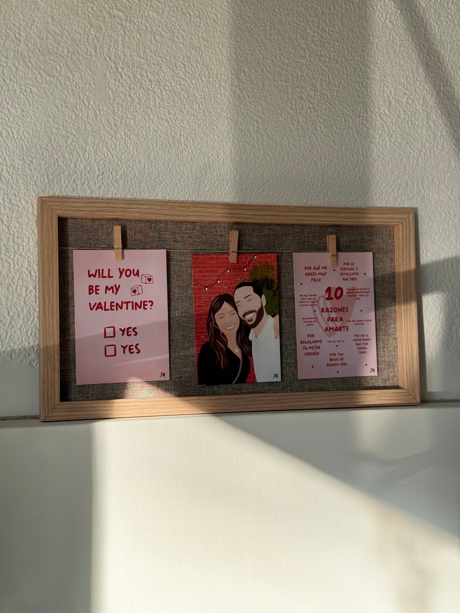 Only You – Set de 3 Ilustraciones Personalizadas con Fondo Acuarela + Marco Alargado (Madera Clara, Oscura o Blanca)